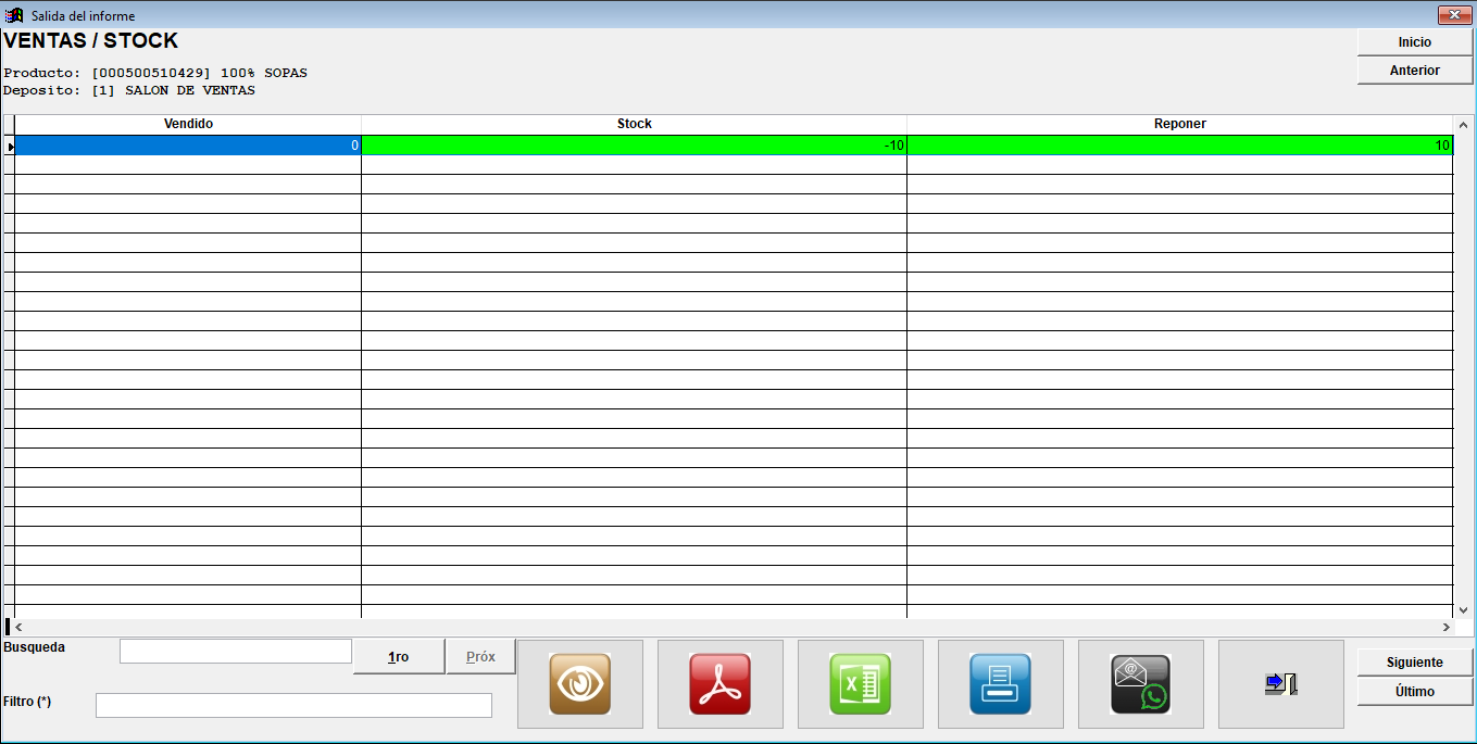 y se abrirá una nueva ventana con el informe de ese producto que podrás imprimir y/o exportar: