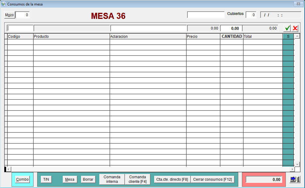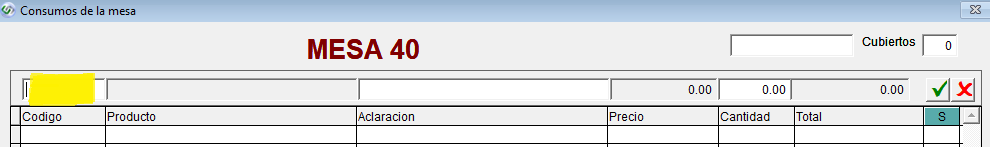 En la ventana correspondiente a los consumos de la mesa observarás lo siguiente: