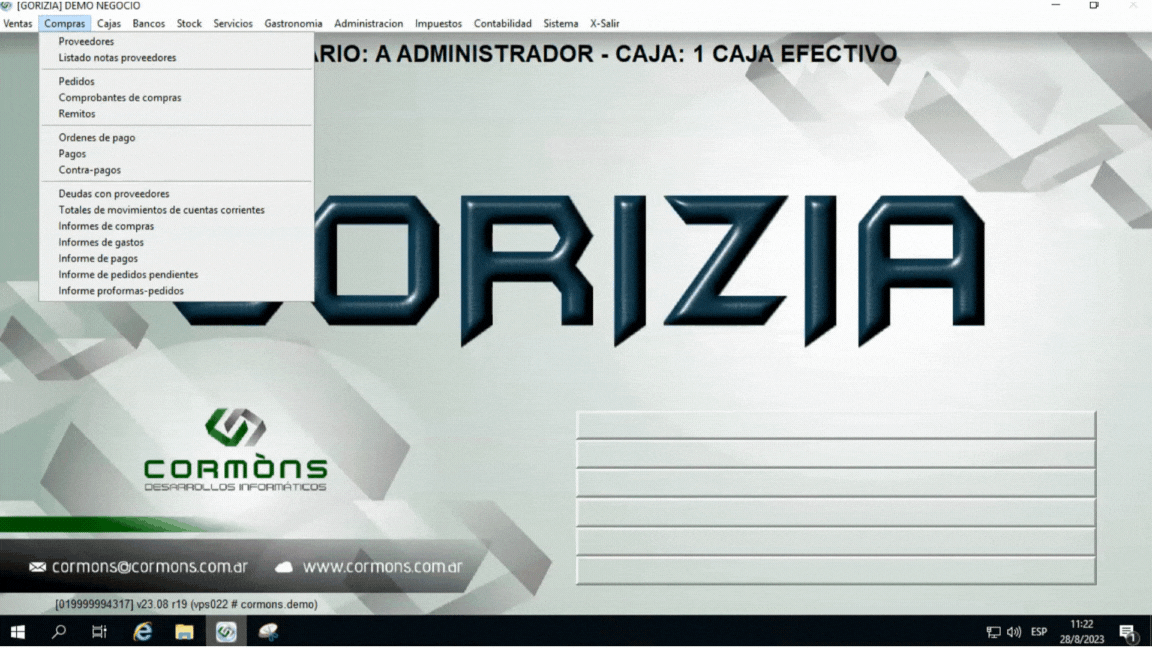 Si tenés una versión diferente, contáctate con Soporte Cormòns al +54 9358600USER (8737)