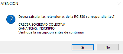 El sistema le preguntará si desea calcular las retenciones según la RG 830. Si es tú caso hacé clic en SI