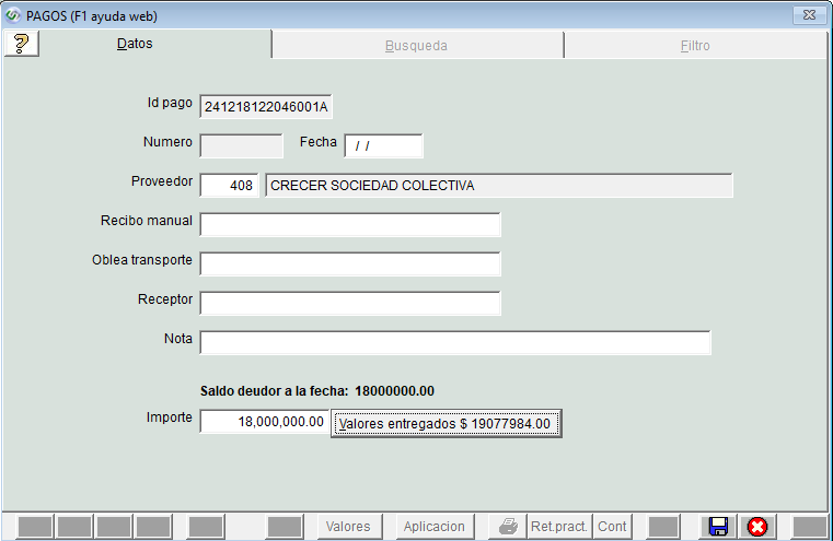 - Importe del pago. Cargar el importe total del pago que debe realizar y apretar ENTER.