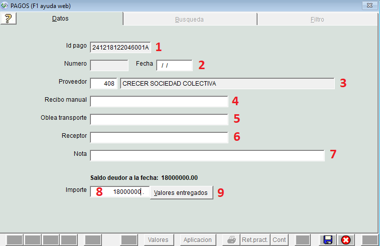 - Número de recibo, en el caso de que se hayan realizado recibos manuales (opcional).