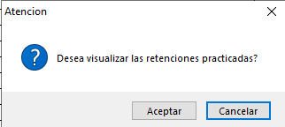 Se abrirá el siguiente cartel donde puede apretar "Aceptar" para realizar un chequeo o incluso imprimir el detalle de la retención antes de confirmar el pago y finalizar el proceso.